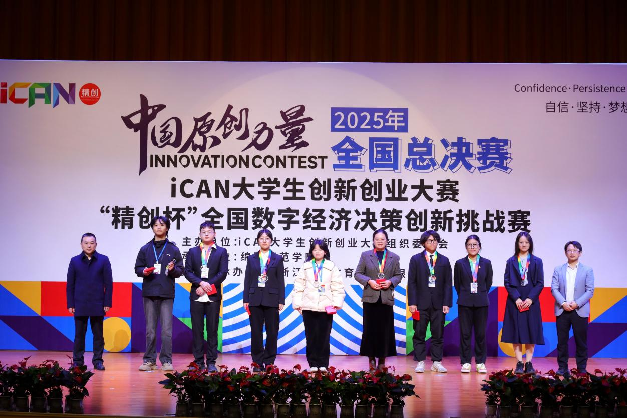 2025年11月22日至11月23日,iCAN大学生创新创业大赛“精创杯”数字经济决策创新挑战赛全国总决赛在四川绵阳圆满落幕。经过激烈的角逐,我院选派的星辰大海队(成员:李小妹、周宸烨、沙炜)斩获国家级一等奖,这是学校在此类赛事上取得的最好成绩。